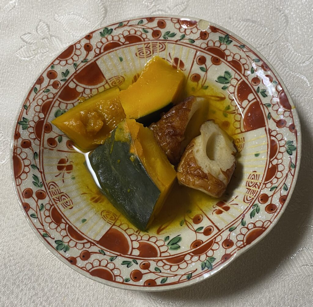 かぼちゃの煮物が好きだ。 もっともシンプルなのは、かぼちゃだけを煮た料理で、これでも十分に美味いと思う。 しかし、鶏肉、ちくわ、昆布などと一緒に煮ると、さらに旨味が増して美味しくなることも事実だ。 写真の場合には、普段は使わない材料として、さつまいもも混ぜた。