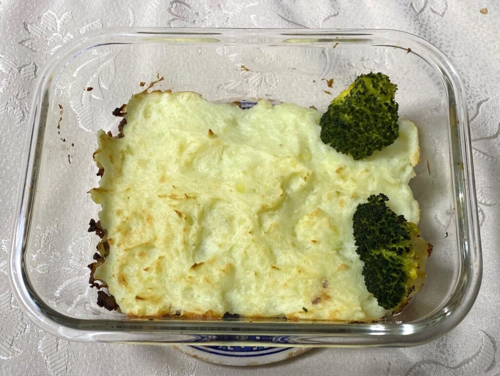 味付けが薄味なので、じゃがいも、牛ひき肉などの食材固有の味がしっかりと味わえた。妻から「また作ってね」と所望された。