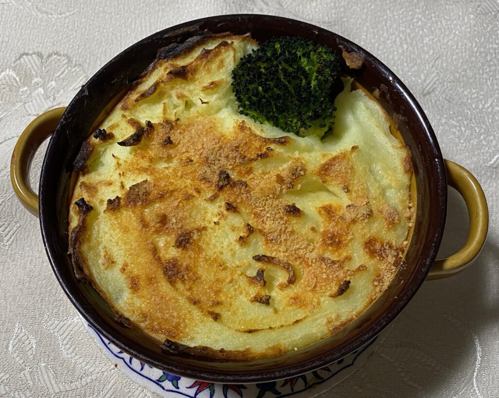 とても美味しかった。ゆでたじゃがいもをマッシュするために、マッシャー(?)やフードプロセッサー(?)を使うと書かれていたが、どのようなものか分からないし、手元を探しても見つからなかったので、結局大きなスプーンでじゃがいもをつぶしただけだった。それでもトロリとしたじゃがいもペーストができた。