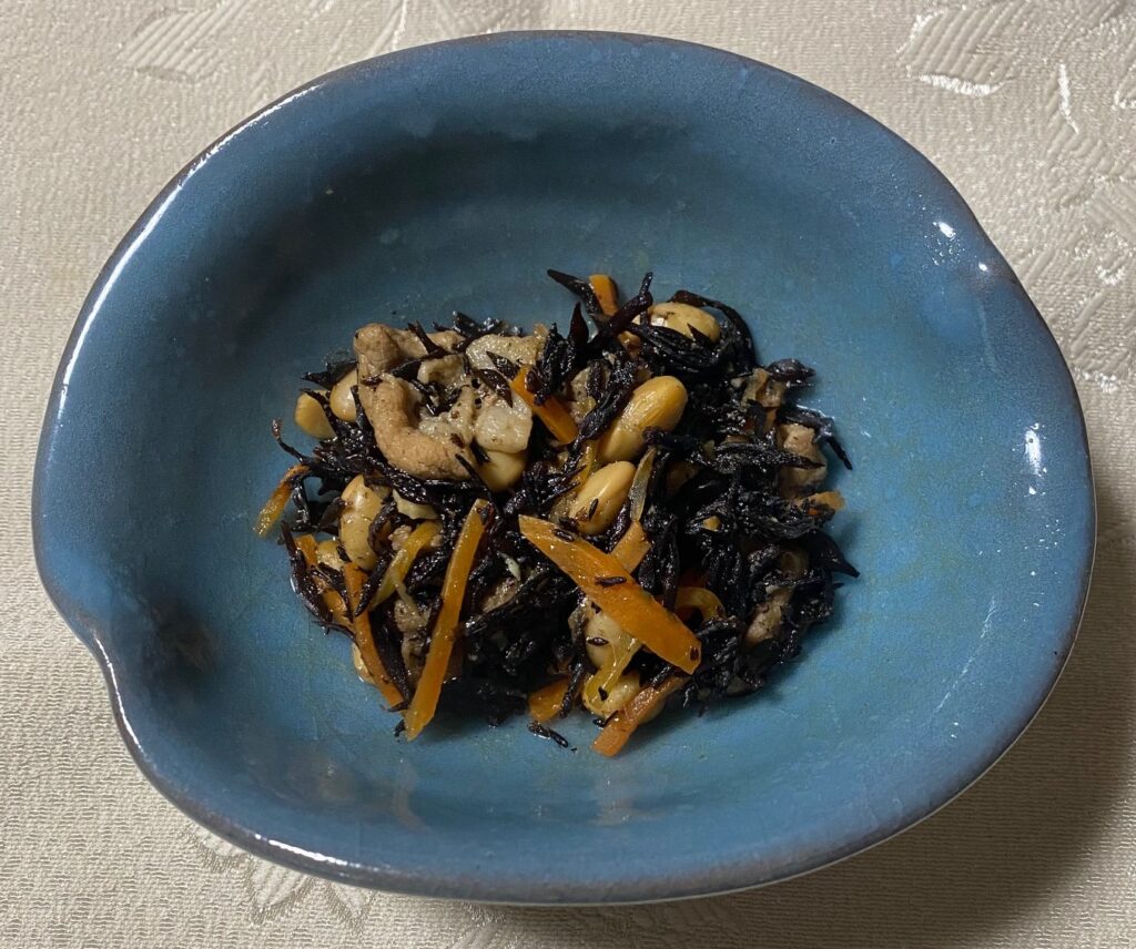 子供の頃はひじきは佃煮と思っていた。結婚して妻が作るひじき料理を食べるようになり、味の濃い佃煮では無くて、薄味の煮物であることを知った。食べる量も佃煮として小皿に乗せるのではなく、茶碗一杯分くらいの量を椀によそう料理となった。