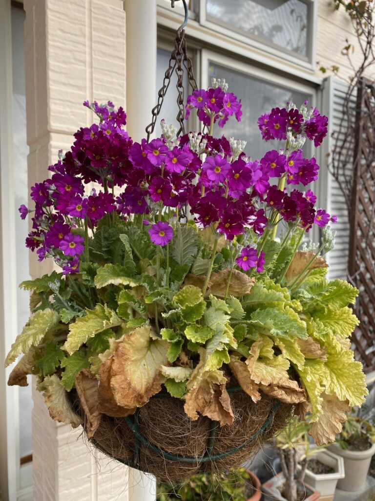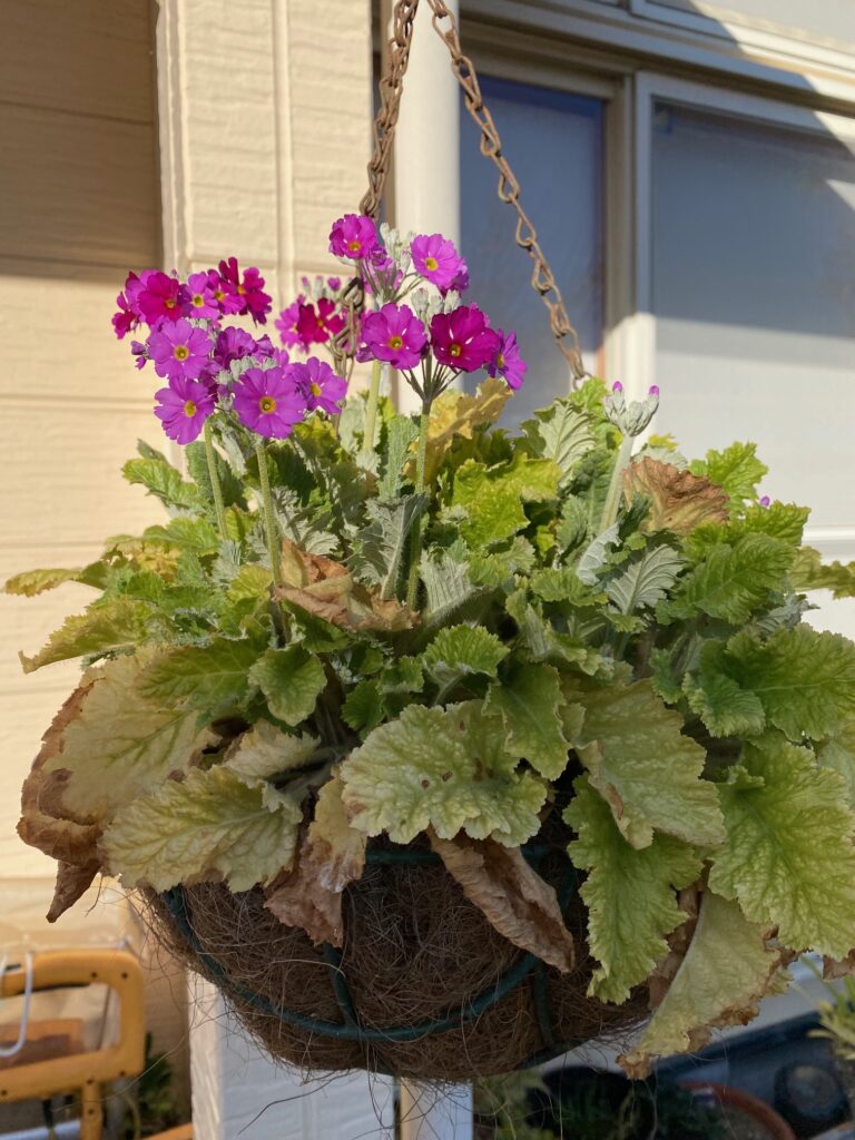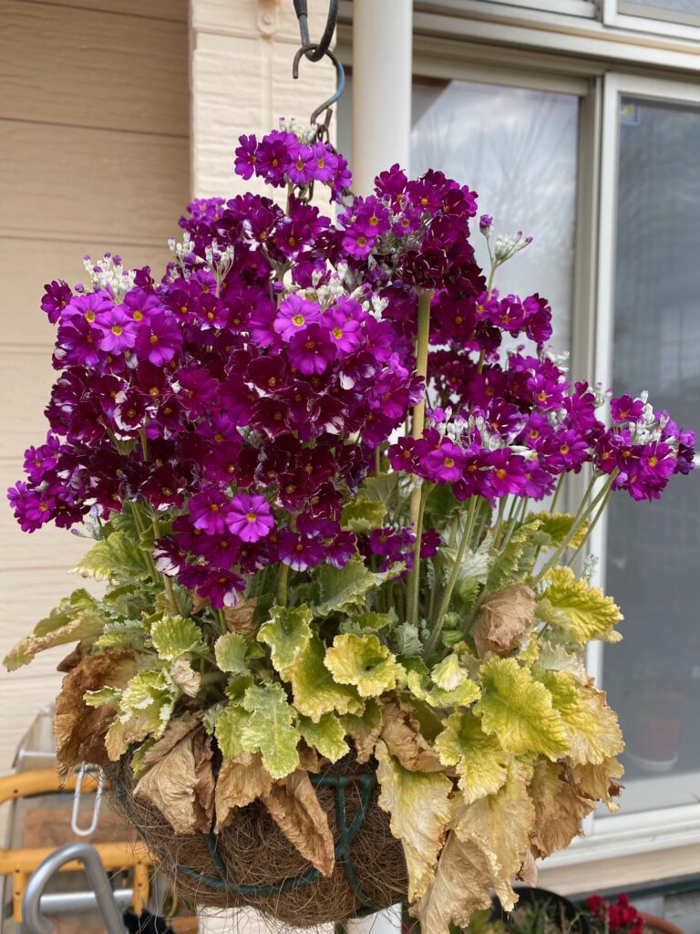 サクラソウ科。多年草。花言葉 少年時代の希望、初恋、自然の美しさを失わない、純潔、あこがれ。 原産国は日本。桜草と書く。4~5月に花を咲かせると図鑑にある。 我が家のサクラソウは品種改良品で開花が早かった。名称:耐寒マラコイデス うぐいす (学名:プリムラ・マラコイデス)開花:12~3月 1年草。 バンギングで育てたが、説明通りに12月に開花した。