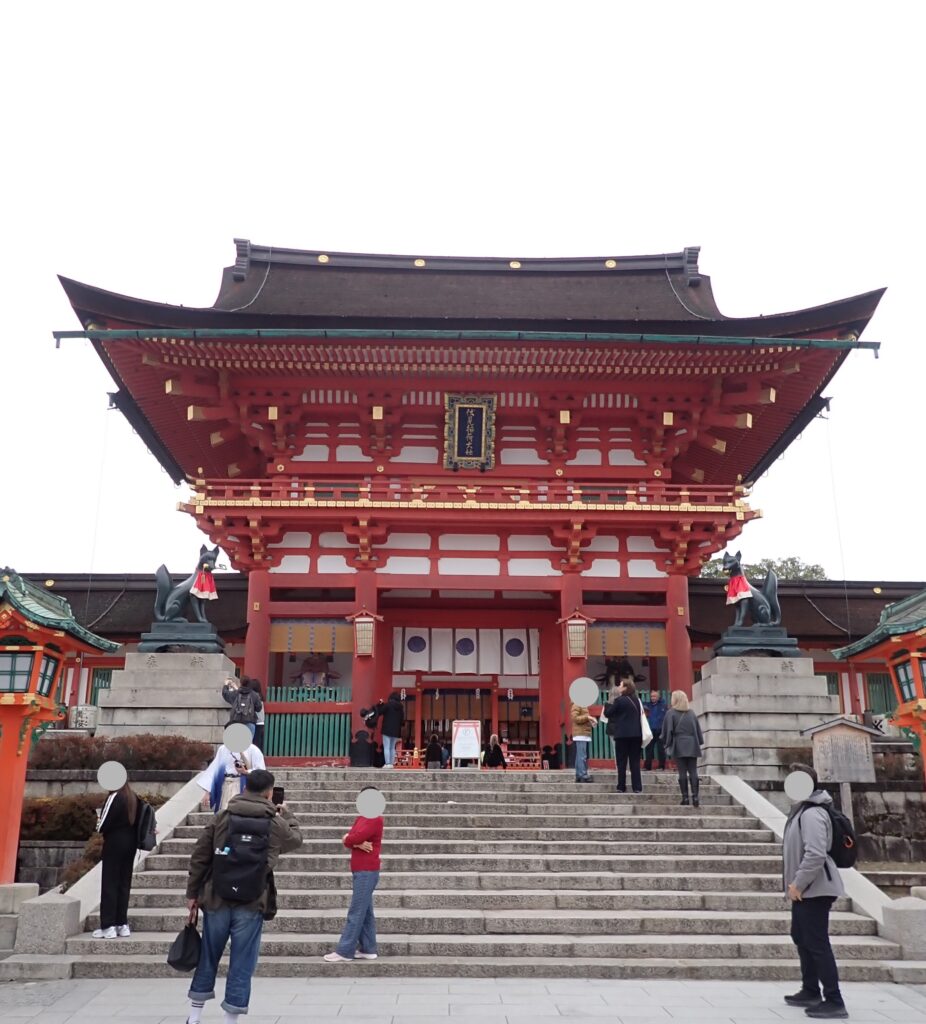 私は楼門、本殿、千本鳥居だけではなくて、稲荷山の山頂の「一ノ峰」まで参拝した。山全体を約2時間かけて一周した。かなりきつかった。