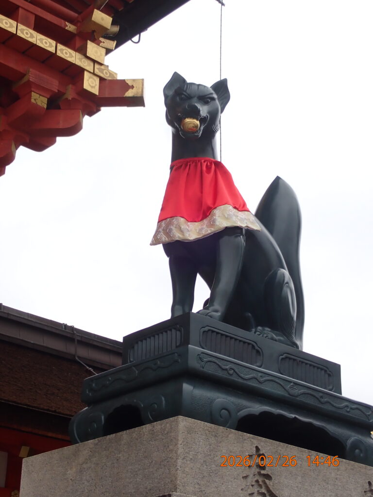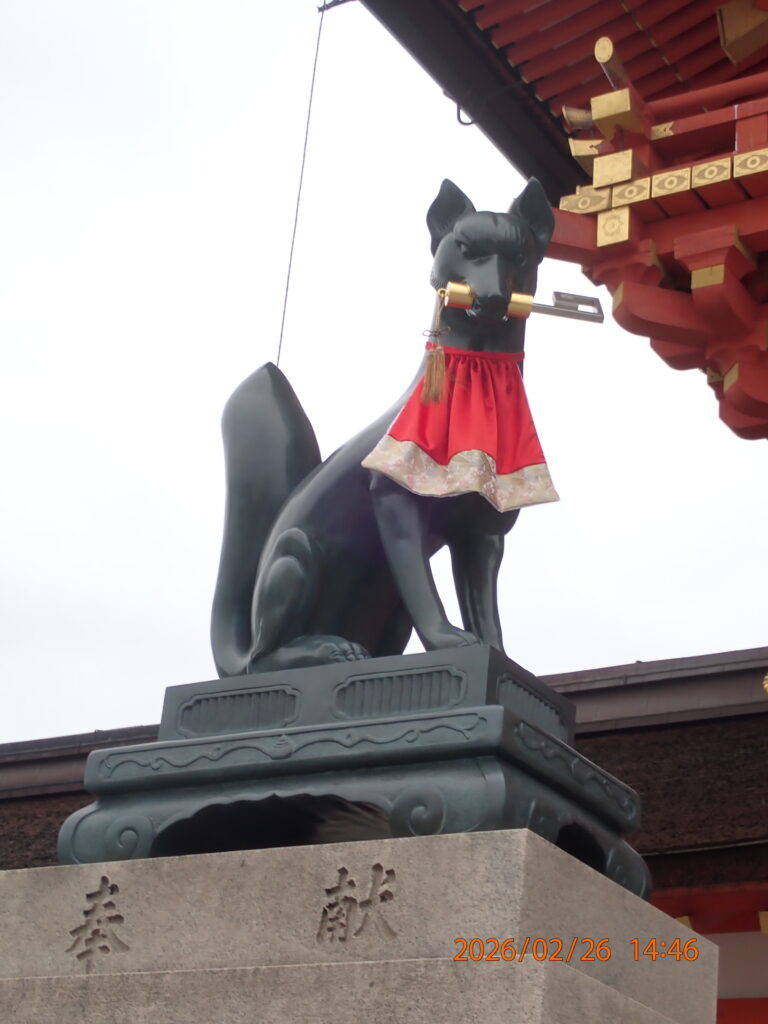 稲荷神社(全国約3万社)の総本宮。稲荷神は827年に従五位下(じゅごいのげ)の神階が与えられ、東寺の守護神として崇められた。その後、942年に正一位(しょういちい)*1)となる。現在でものぼりに「正一位稲荷大明神」と書かれているのはこのため。