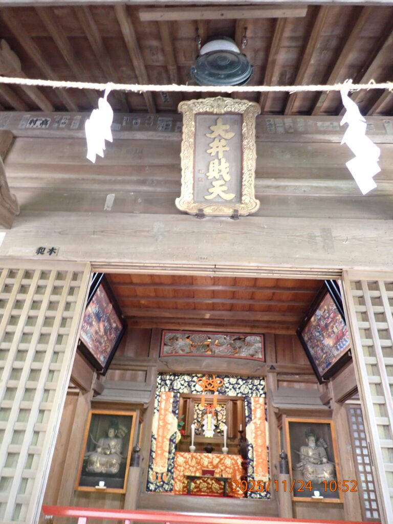 仏殿にはご本尊 宝冠釈迦如来が祀られている。天井には前田青邨(まえだせいそん)の監修のもと、守屋多々志によって描かれた「白龍図」がある。