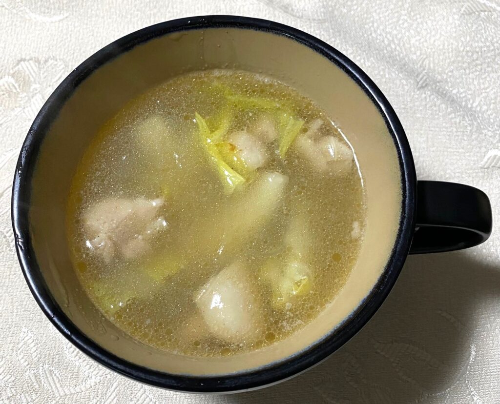 顆粒状のチキンスープの素を入れ過ぎたようだ。味はしっかりと出ているが、少し濃すぎる。濃ければ良いというものでは無い。下味はほのかな方が、素材の味が分かるというものだ。
