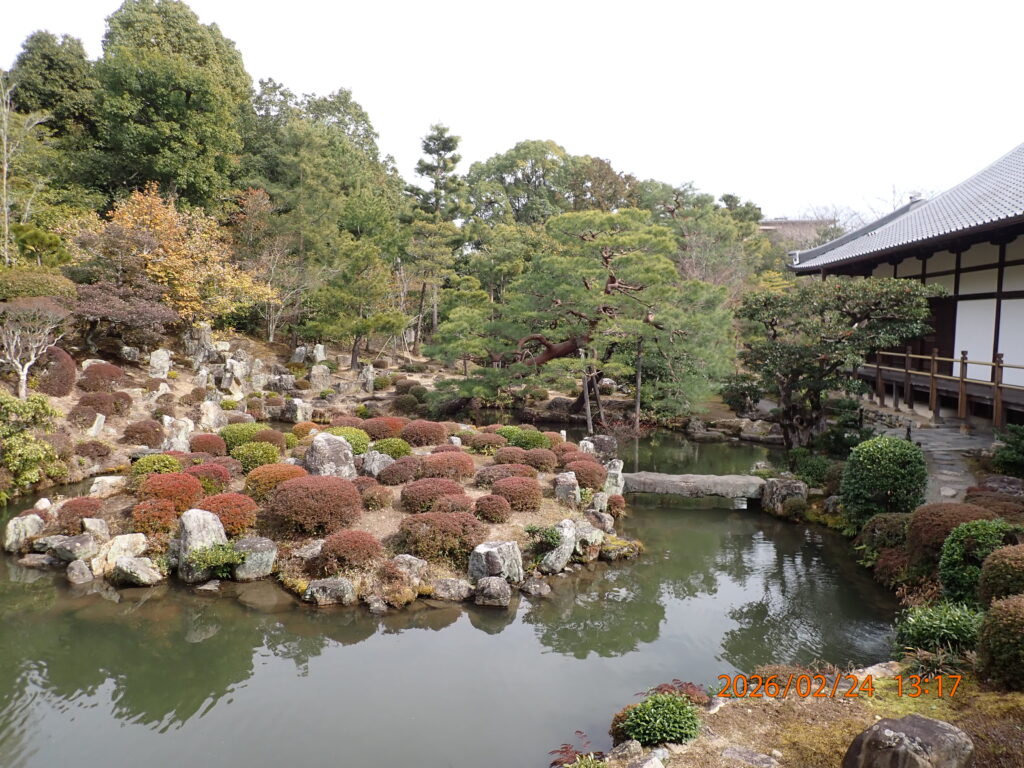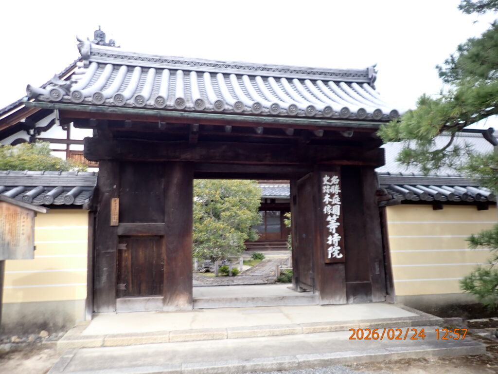 京都市北区等持院北町。1341年創建。臨済宗天龍寺派。開基 足利尊氏 開山 夢窓国師。足利家の菩提寺。足利尊氏の墓所がある。庭園は夢窓国師の作。 霊光殿には足利歴代の将軍像が、徳川家康の像とともに安置されている。 また、境内には日本映画の父とされる「牧野省三」の銅像が立っている。これは、かつて等持院の塔頭跡地に映画の撮影所があったからである。