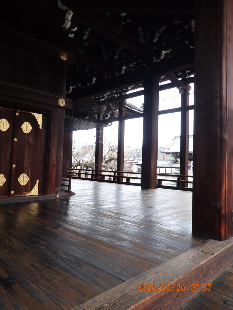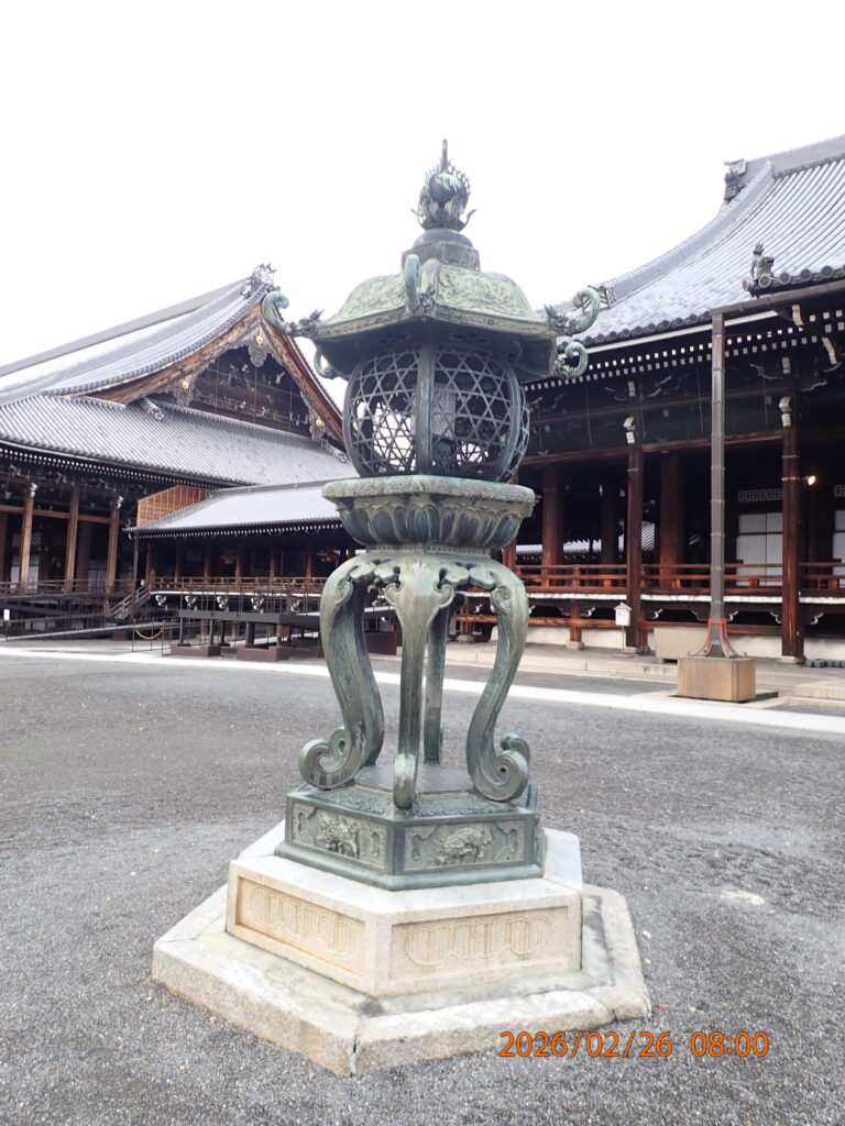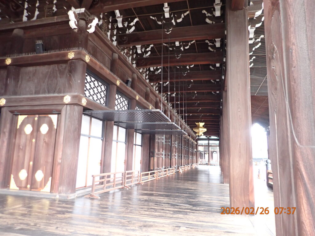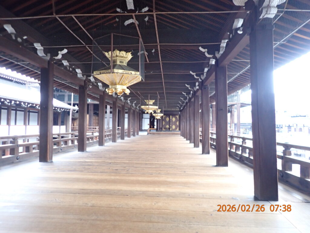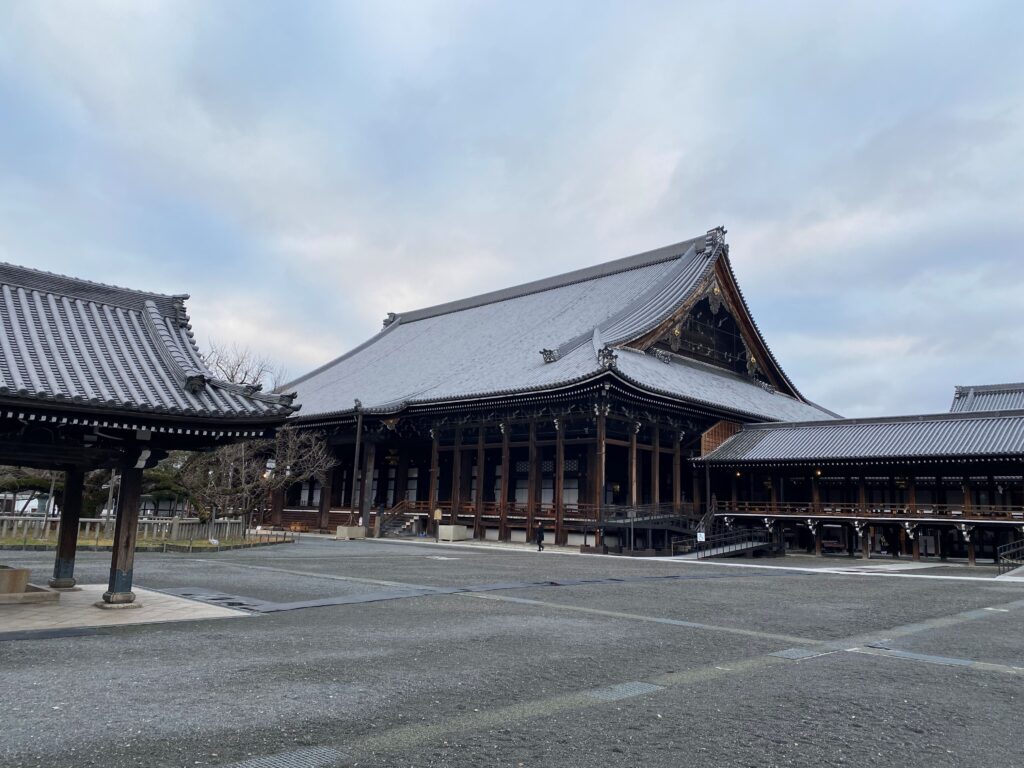 とにかく寺が大きいことに驚いた。しかも、京都の多くの寺で取られる拝観料などは無くて、御影堂も阿弥陀堂も自由に入ることができる。世界遺産であるにもかかわらず、とても開かれていて、生きた現役の寺という印象を受けた。