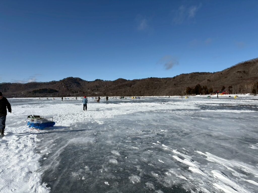 当日は、集合場所を5:30に出発。おのこ駐車場に9:00に到着。前橋市街地までは普通の道だが、赤城山駐車場に行くために山に入り登っていくと、道路脇には雪があり、最後のおのこ駐車場付近は全部雪に覆われていた。どこかでタイヤチェーンを付けなくてはいかなくなるのではないか、と冷や冷やしながらゆっくりと運転したが、幸運にも駐車場まで冬用タイヤだけで問題なく走ることができて、ホッと一安心した。