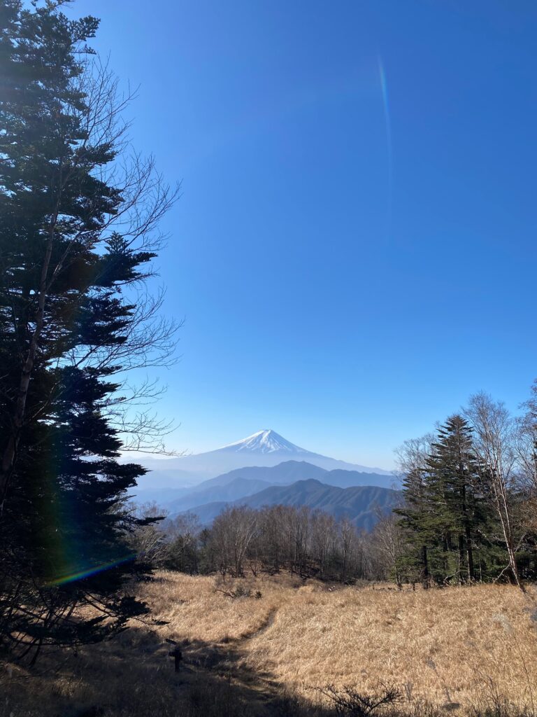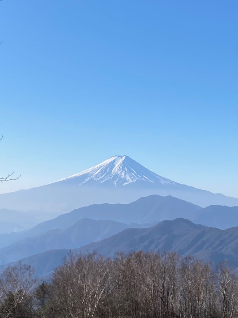 雁ケ腹摺山からの富士山は(現在は無い)旧500円札の裏側の富士山の絵に採用されたことで有名な絶景ポイント。この日も富士山山頂の雪はまだ十分では無いものの、非常に美しい姿を拝むことができ感動した。
