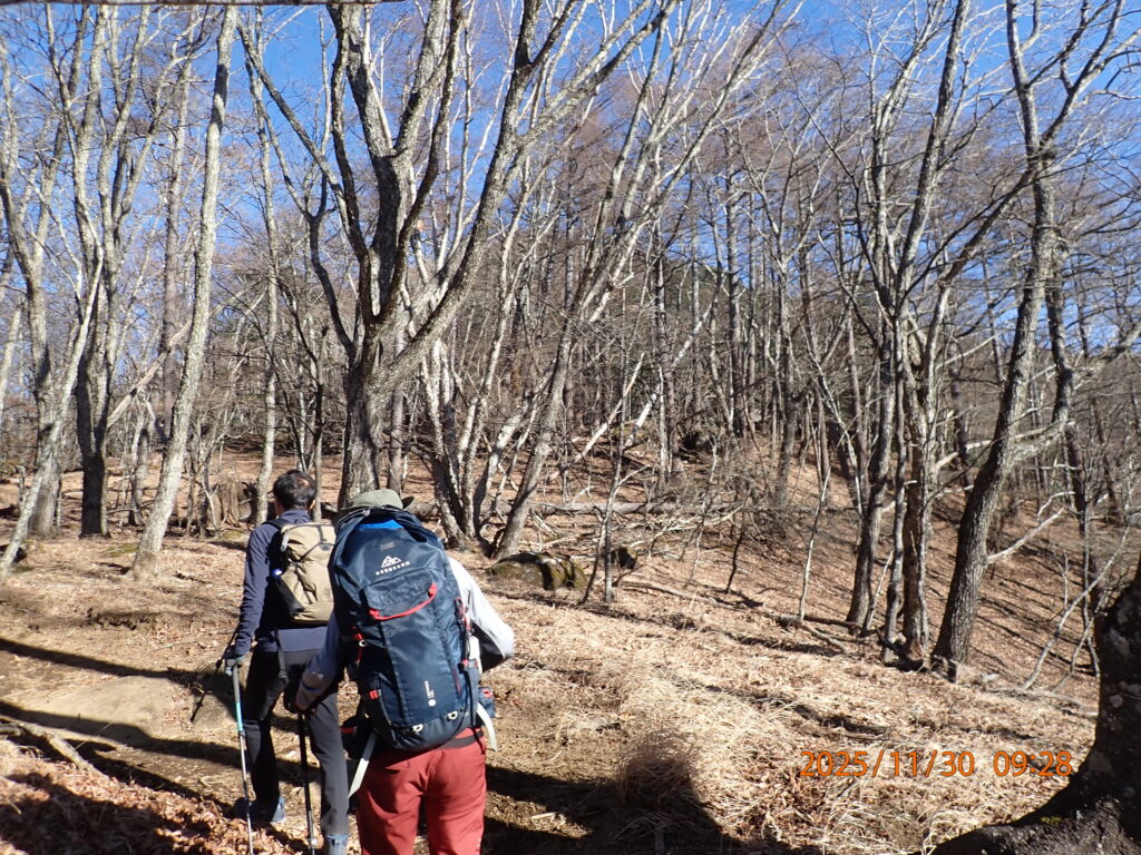 姥子山から再び雁ケ腹摺山に戻る道は、逆に急な登り坂で結構大変だった。