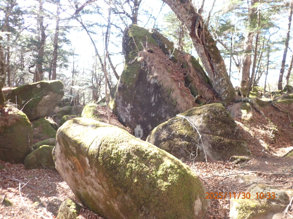 姥子山 山梨県大月市。1503m。山頂は双耳峰となっており、最高地点は西峰。開けて景色が良いのが東峰。