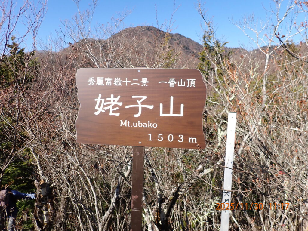 雁ケ腹摺山から姥子山へは、約400m下ることになる。姥子山山頂からの富士山も少し角度は変わるが、とても綺麗だった。